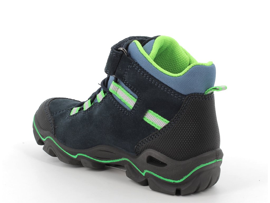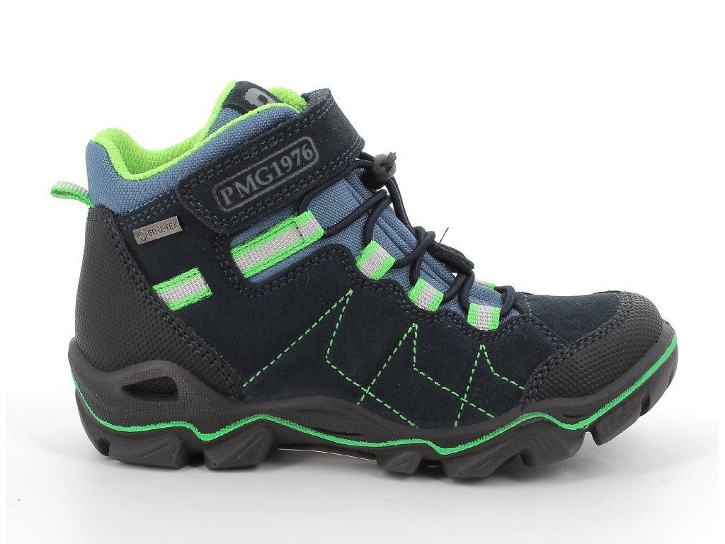Kotníčková bota s membránou Goretex, s ohebnou podešví. Zapínání: gumičky + suchý zip.