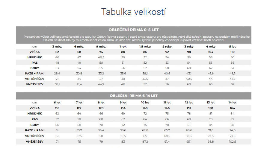 Finská firma Reima je již od roku 1944 specializovaným výrobcem sportovního a funkčního oblečení a obuvi pro děti. V jejím oblečení mohou děti ven za jakéhokoliv počasí. V nabídce Reimy jsou kolekce na lyžování, do zimy, do deště, kolekce oblečení s UV ochranou i dětské funkční prádlo. Pro značku je typické použití nejmodernějších materiálů a kvalitních funkčních membrán. Dětské oblečení Reima nepromokne, dokáže odvádět pot a přitom je vysoce odolné vůči oděru.